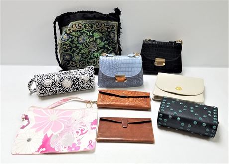 Nine purses or large wallets from various manufacturers in various designs.  There are some cute ones here.