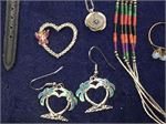 Cute pieces here!  Palm trees, elephants, butterfly heart, little Southwest or Native American turquoise rings, 2 vintage gold-filled rings, and even an 1888 sweetheart token.