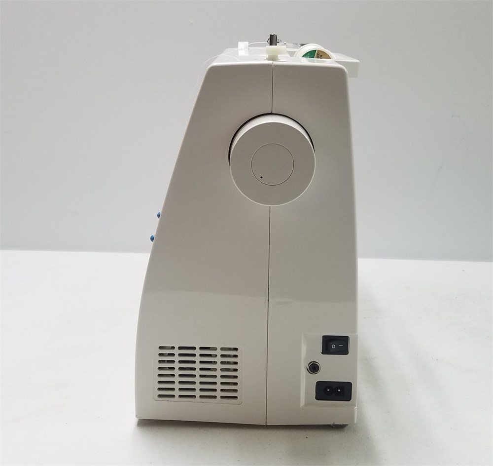 Singer "Precision" electric sewing machine. Including needles, small collection of colored thread spools, foot pedestal, and instruction booklet.