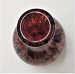 Probably Murano, a quality art glass vase, red colors with streaks of shimmery gold.