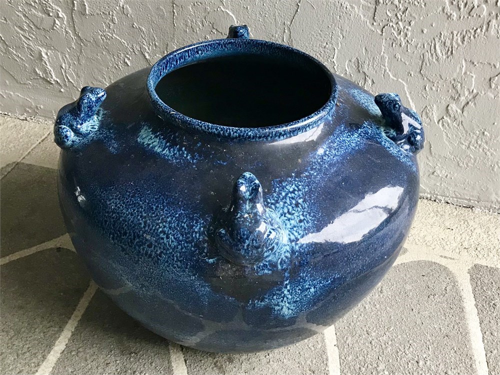 Large Outdoor Pottery Planter with Frogs