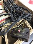 Louis Marx electric train set with original box.  Tin cars, Union Pacific engine; has flaws including frayed cord and rusty car.