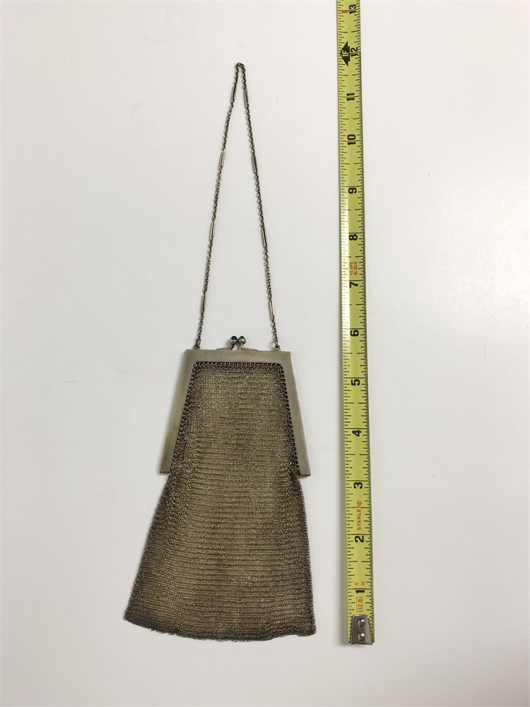 Petite sterling silver vintage evening bag, longer than a coin purse.  Marked Sterling.
