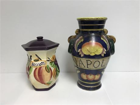 Classic jars for a kitchen or restaurant decor.  Ceramic, in good condition.