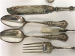 Very pretty group.  Most appear to be silver plated.  Most are marked Rogers, but there are a few others too including Marthinsen (Norway).  One has a mother-of-pearl handle and is very detailed.  2 large serving spoons and various other sizes.