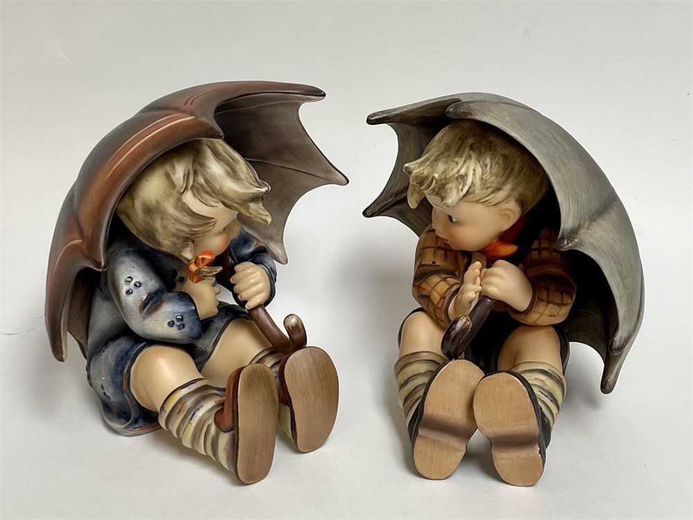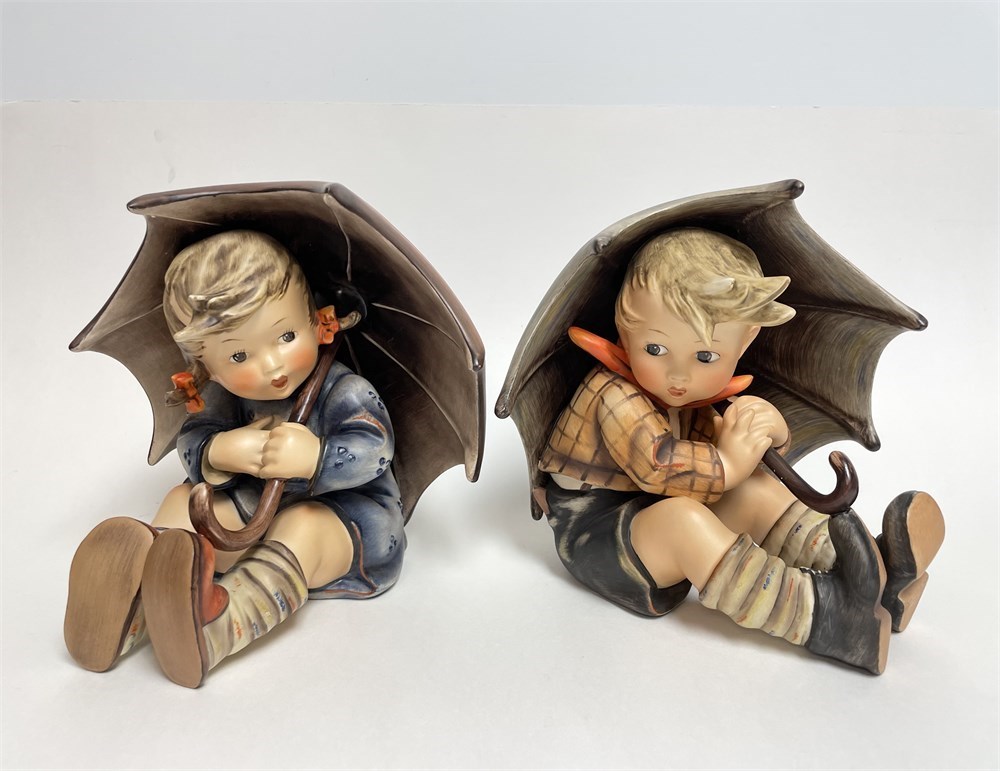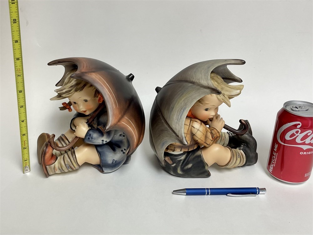 Beautiful Hummel pieces in good condition with no damage or chips.  These are the large 8" size.  See photos for bottom marks.  Hummel 152 A (bee in V, TMK 3) & 152 B (West Germany, dated 1951).