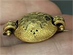 A highly detailed Victorian brooch with black enameled accents and a scroll design on the sides.  Unmarked; tests as 14K gold.