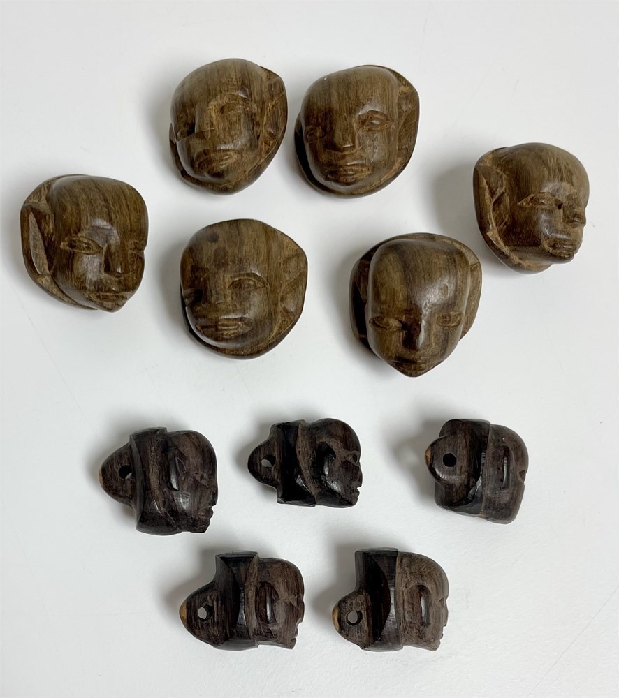 Carved wood African buttons, each with a face.  These are hard to find.