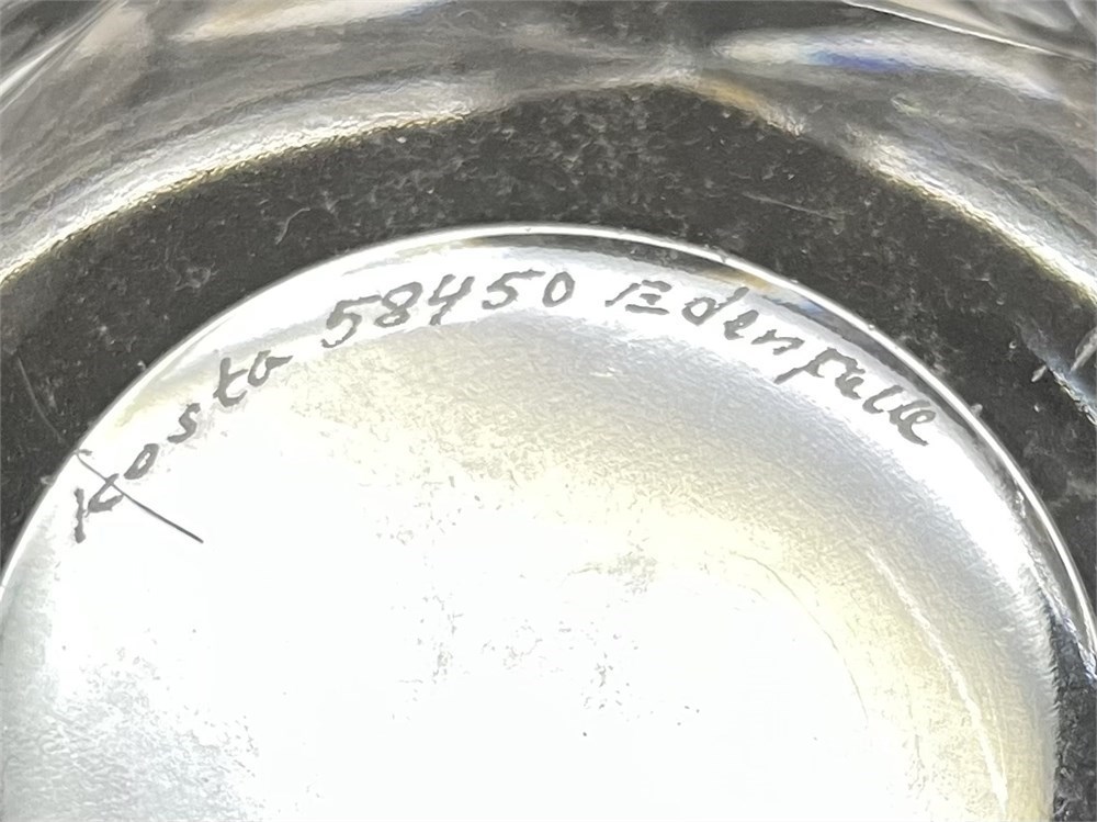 5 1/2" diameter crystal candy bowl.  No chips or cracks.  Artist signed "Edenfalk" and numbered and marked Kosta.