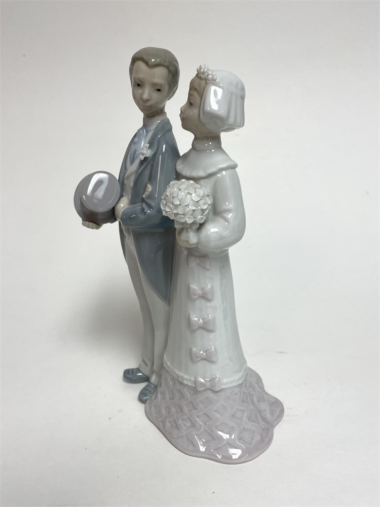 As-is, with the groom's boutonniere missing a petal.  Otherwise ok.  Lladro porcelain couple, hand made in Spain.  About 7.5" tall.