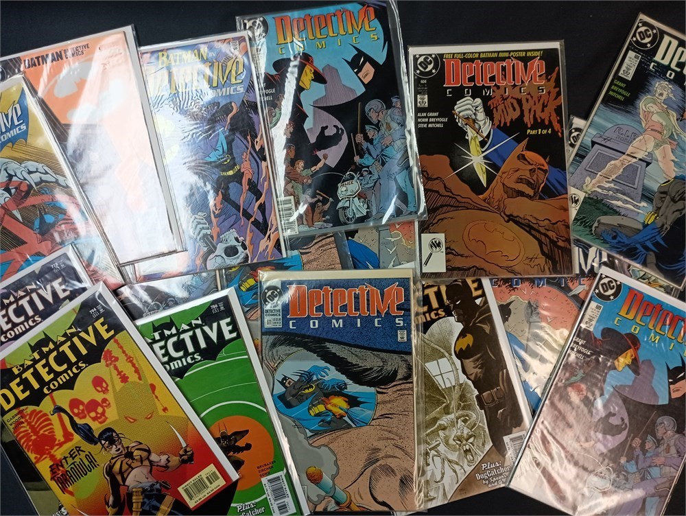 18 Detective comics, and all are Batman.  Come check them out or take a chance.  Several are pictured.  All sleeved.