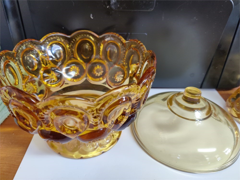 Vintage Moon & Stars Amber Glass fairy lamp, L.E.Smith/L.G. Wright.  All pieces are in good condition.  Unusual item!