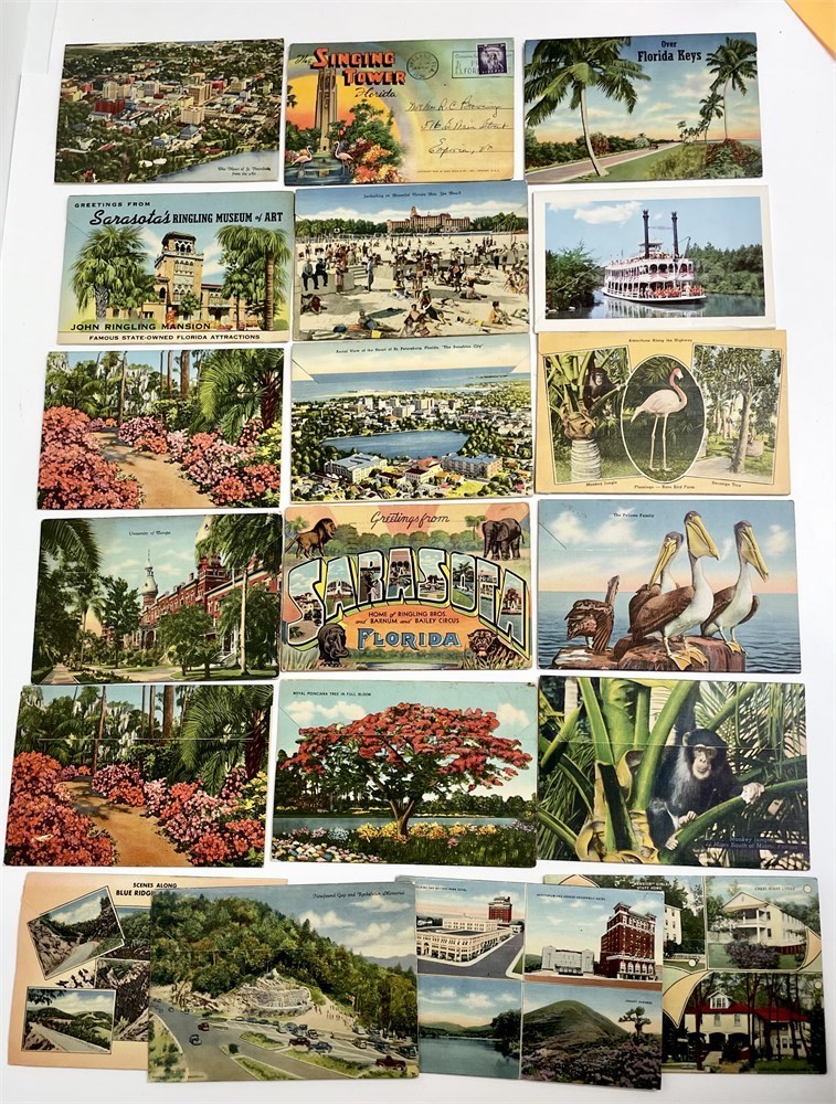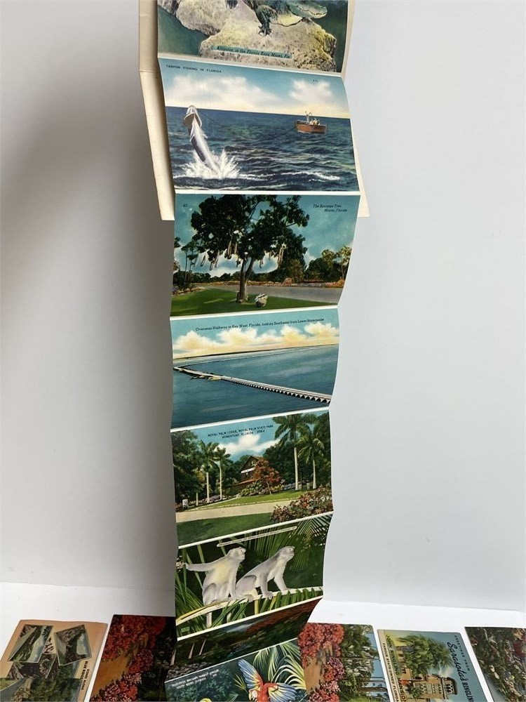 Vintage postcard folders containing multiple views inside each.  Fabulous graphics of "Old Florida" including St. Petersburg, Tampa, Miami, the Keys.  And Sarasota and Ringling Bros Circus too, so cool.