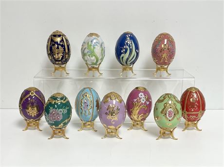 11 Faberge Imperial Jeweled Eggs by Franklin Mint, 1990