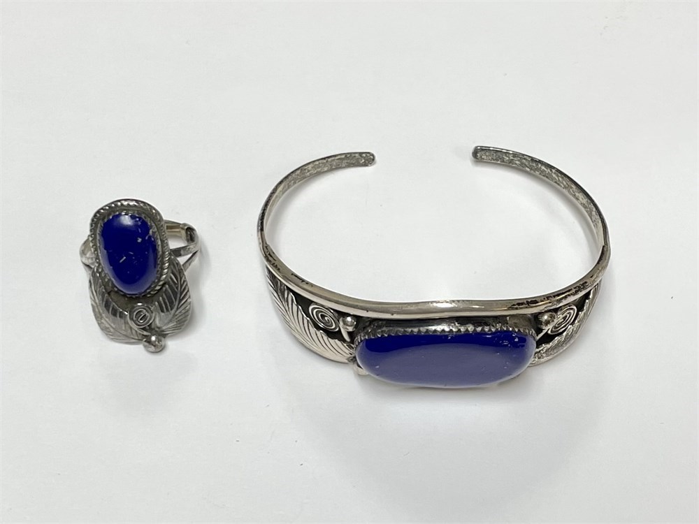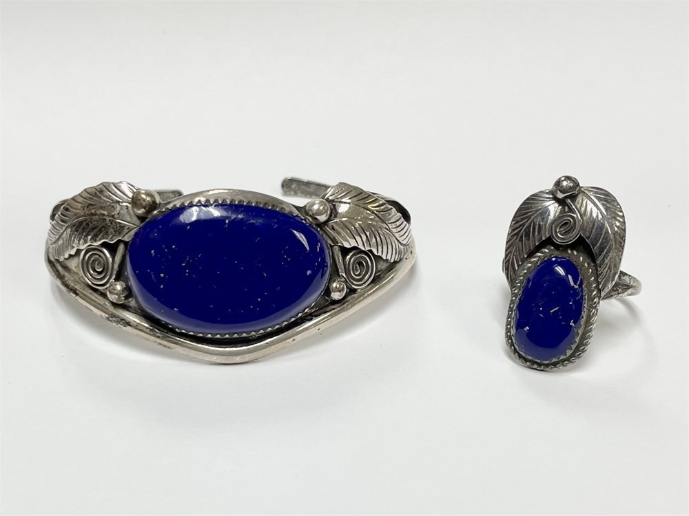 Lapis and Sterling Silver Navajo Bracelet and Ring, by John Mike