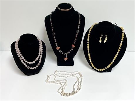 Rose Quartz, Freshwater Pearls, Other Stone Necklaces, Silver Bracelet