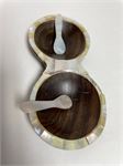 Double-well caviar set, wood with mother-of-pearl trim and mini spoons.  It's missing a few pieces of the trim.
