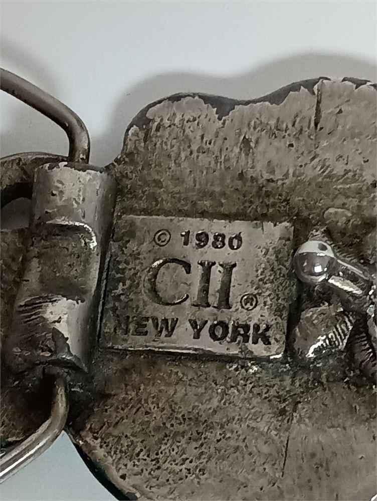 Vintage 1989 Freddy Krueger figure made out of some kind of hard rubber.  Along with 2 collectible skull buckles, and a lighter that sparks and may be refillable.  Notice the Bergamot skeleton head cowboy hat buckle, as it is listed online for $60 and hard to find.