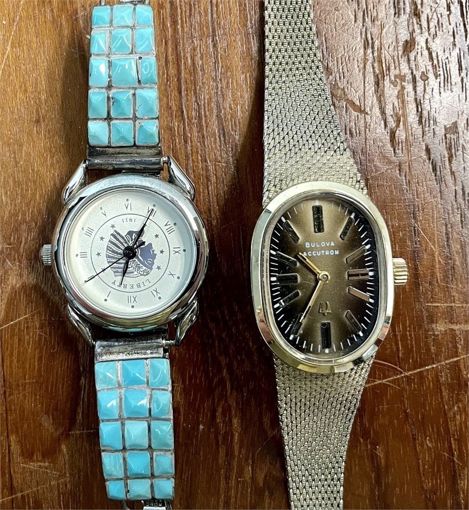 Older and newer watches in a variety of styles and brands.  All "as is" because they most likely need batteries.  The Movado looks good but the band is worn.  The Tissot may be collectible, but its condition is not great.  One seems to have a turquoise band.  See photos...