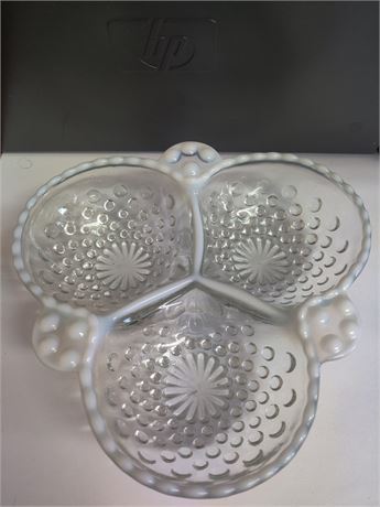Vintage Fenton Opalescent Glass 3 Bowl Candy Dish.