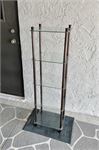 Display shelf unit, about 4'4" tall.  Each glass shelf is about 16" x 12".  The poles are a bronze-colored metal and can be disassembled.  Looks nice.