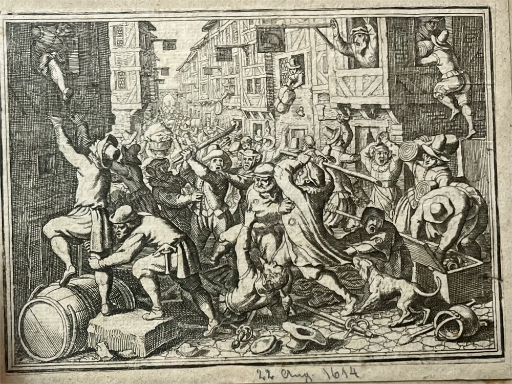 17th Century Engraving of 1614 German Riots, by Matthaeus Merian