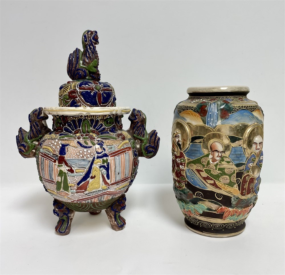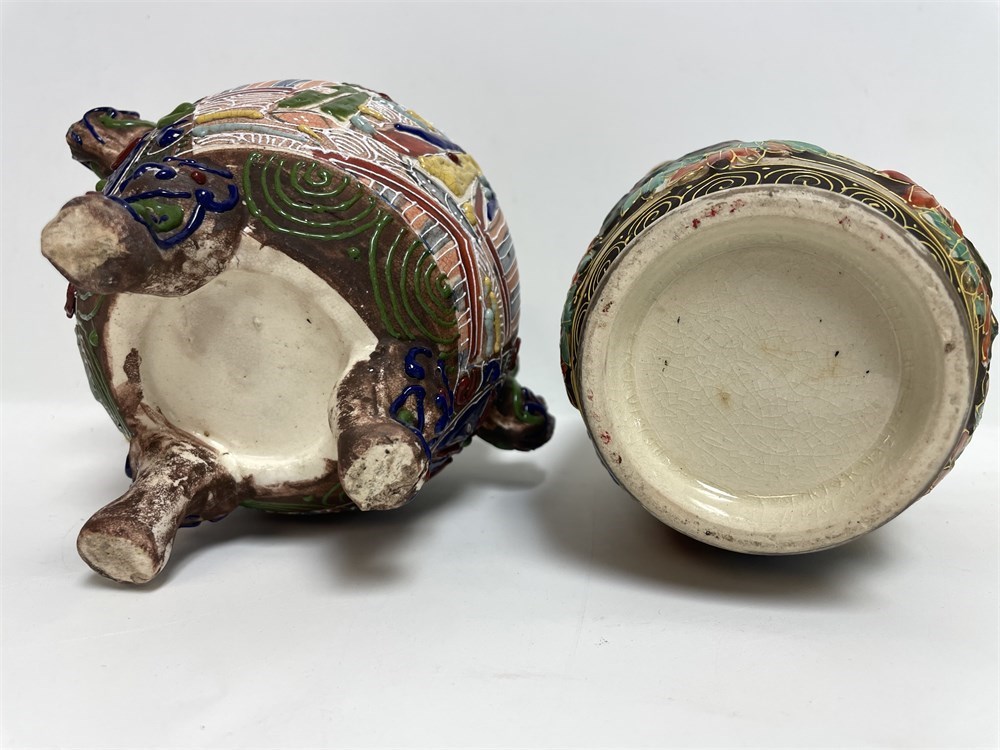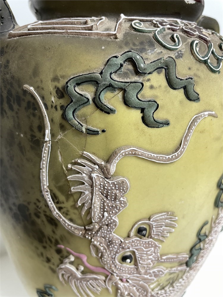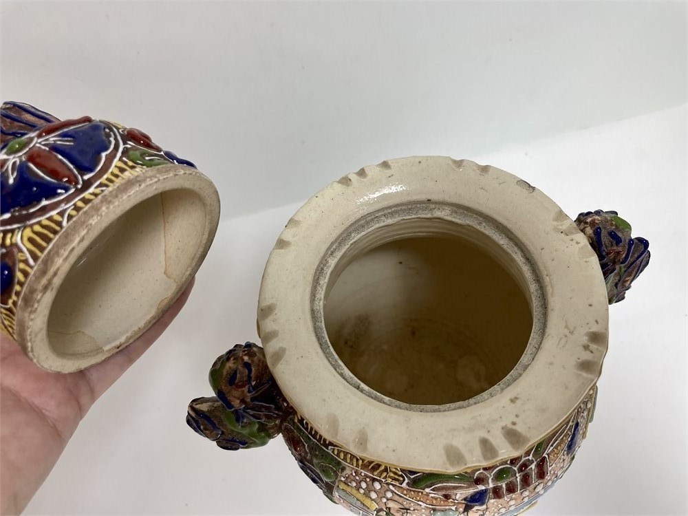 Satsuma Vase, Moriage Foo Dog Urn, Nippon Miyako Vase