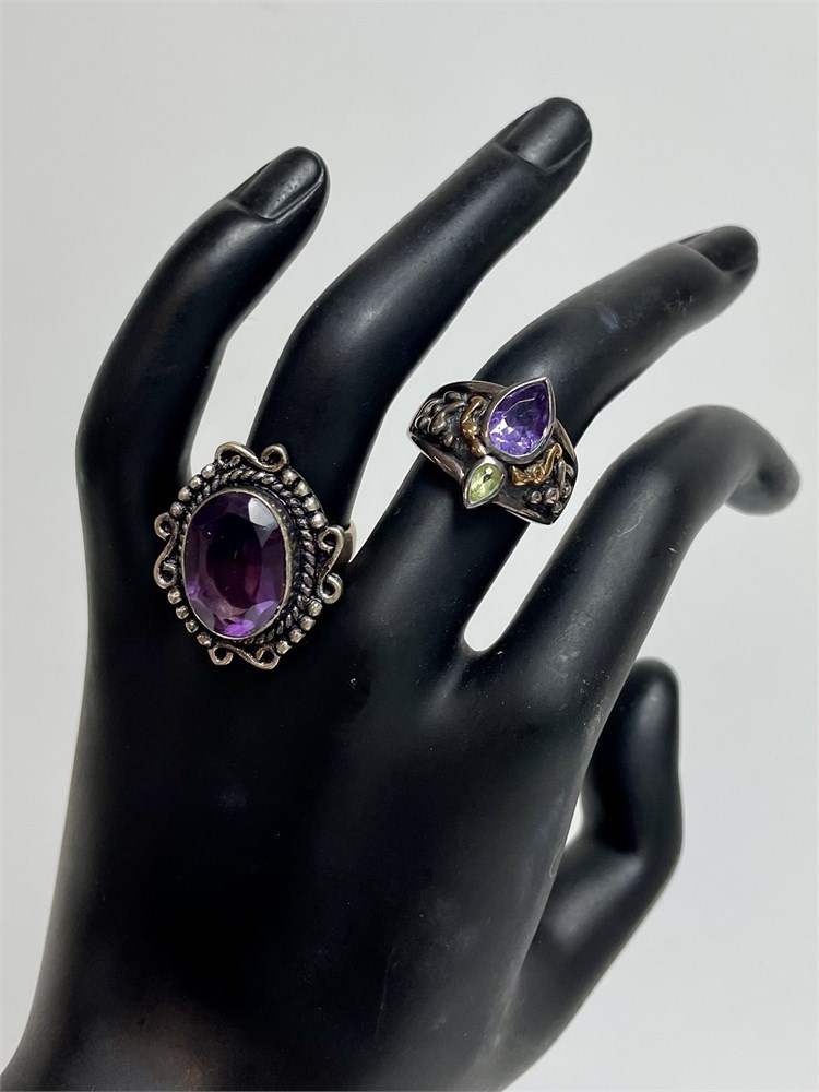 The other has both a purple and green stone, and is marked 925 (sterling silver).  Size 6 1/2.