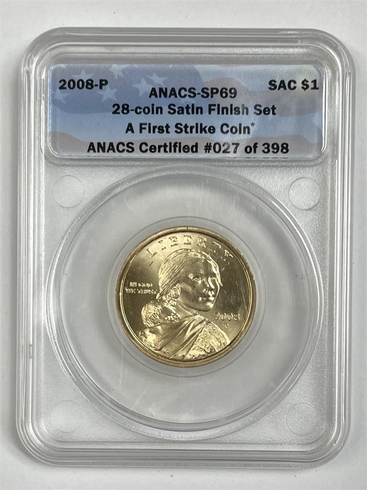 2008-P Sacagawea $1, ANACS SP69 First Strike, Satin Finish