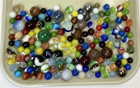 Estate collection of marbles, good variety of older ones including some shooter size.  Just a few glow under black light too.  Please see photos.