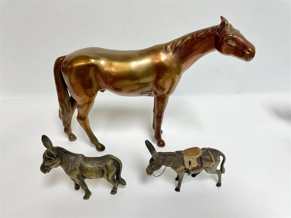 An estate group of small metal sculptures.  May include brass or bronze or plated, and one of the donkeys is painted metal.  Neat group.