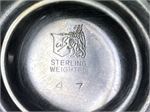 5" candle holder pair, marked on the bottom: Sterling Weighted, with maker's symbol.  Please note the condition includes dents, a hole or two, and wax.