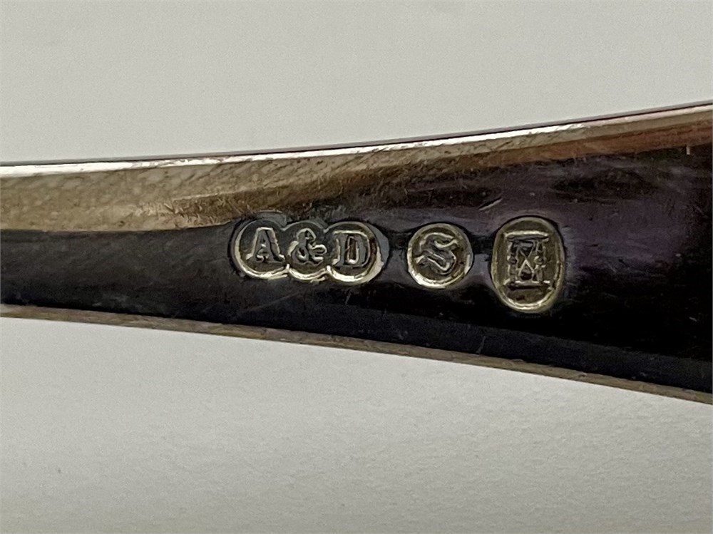 A cutlery set in vintage oak wood box with plain cartouche.  Marked A&D, see photo, probably silver plated.