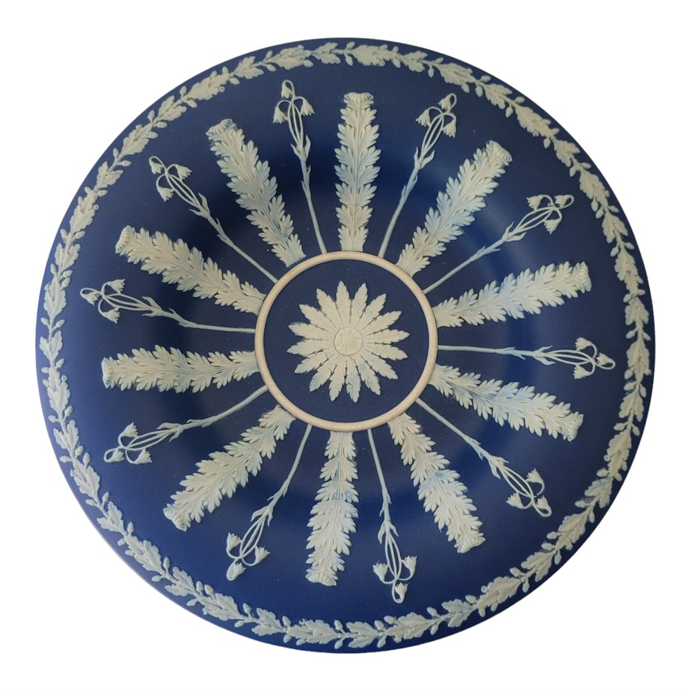 Stunning Wedgwood Jasperware cobalt blue antique bowl. This has the Etruria marking so is late 1800's at least. Original tag is on the back with a price of $395 also marked 1874. This beautiful piece is free of damage.