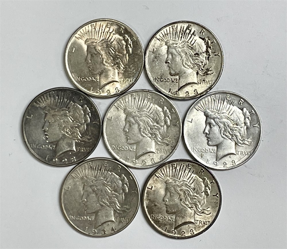 7 Peace Silver Dollars, Assorted