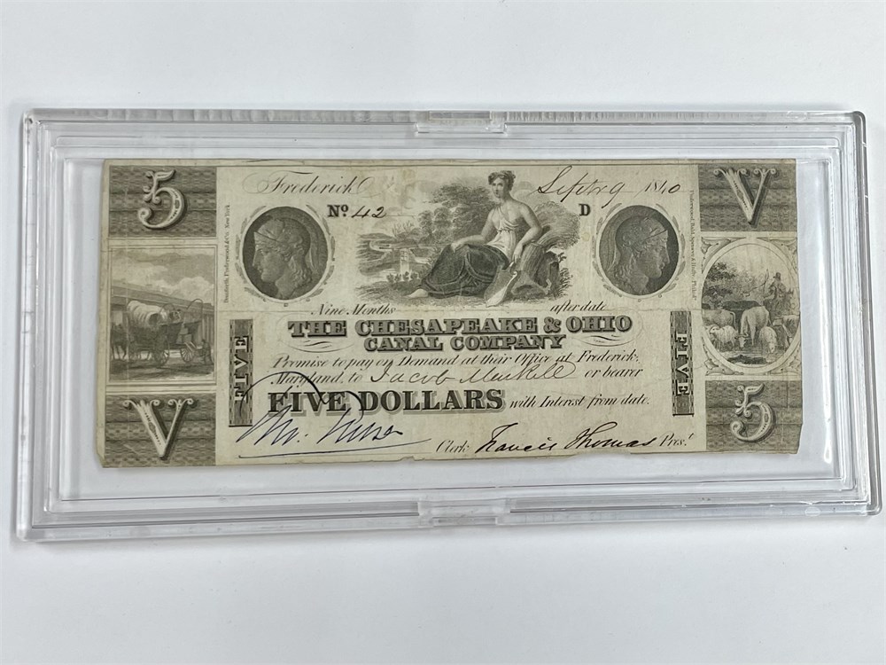 An authentic $5 note from Chesapeake & Ohio Canal Company, dated 1840 and hand signed.