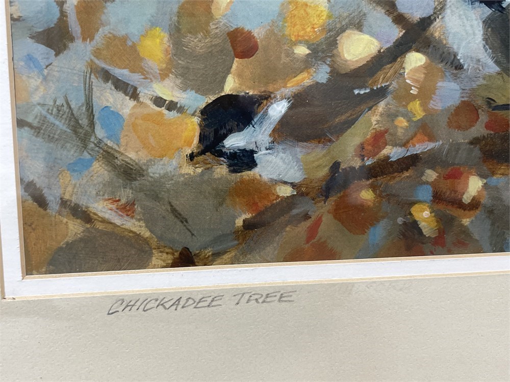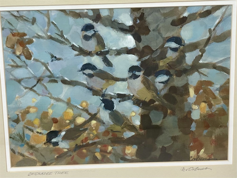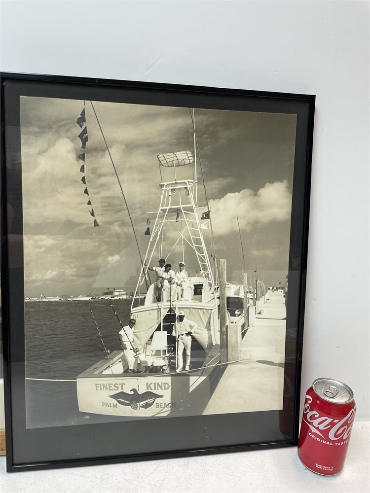 Chickadee print, signed on mat (B. Cobeus?), and a photo print of a Palm Beach boat.