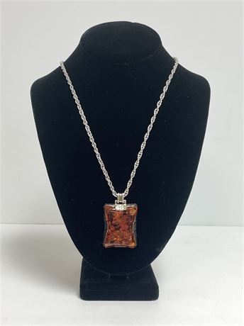 A sizeable amber pendant, set in 835 silver (marked).  It's on a 28" long sterling silver chain (marked 925).