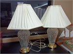 Lamps are 27" tall.  No chips or cracks.  Brass is in good condition.  Lamps are marked Waterford.  Perfect find if you need a matched pair!
