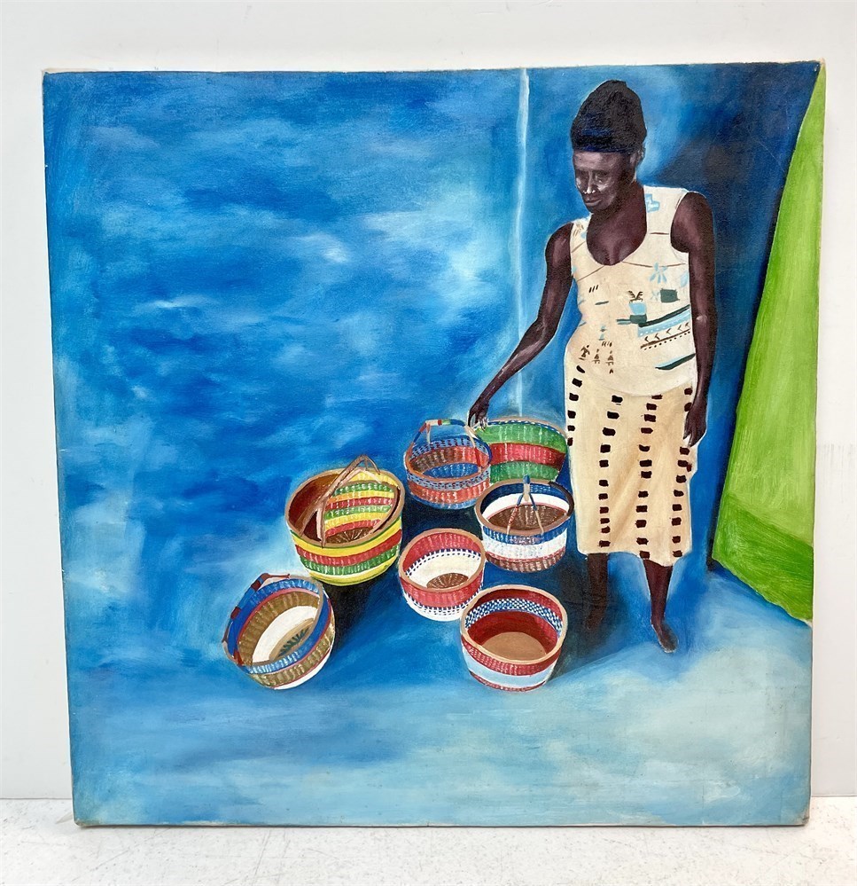 From a small collection of African art, an original painting on canvas, unframed, no signature.