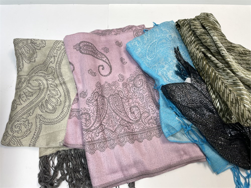 Group includes a Lilly Pulitzer scarf, some pashmina type, some vintage, some like new with tags.  The whole group selling together.