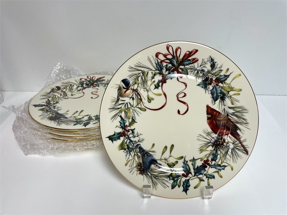 Lenox fine china dinner plates with a winter theme featuring birds.  By Catherine McClurg.  All in good condition, no damage, nice gold trim.  10 3/4" diameter.