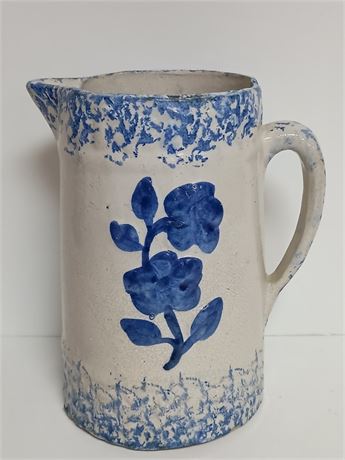 Antique Country Spongeware Stoneware Pitcher