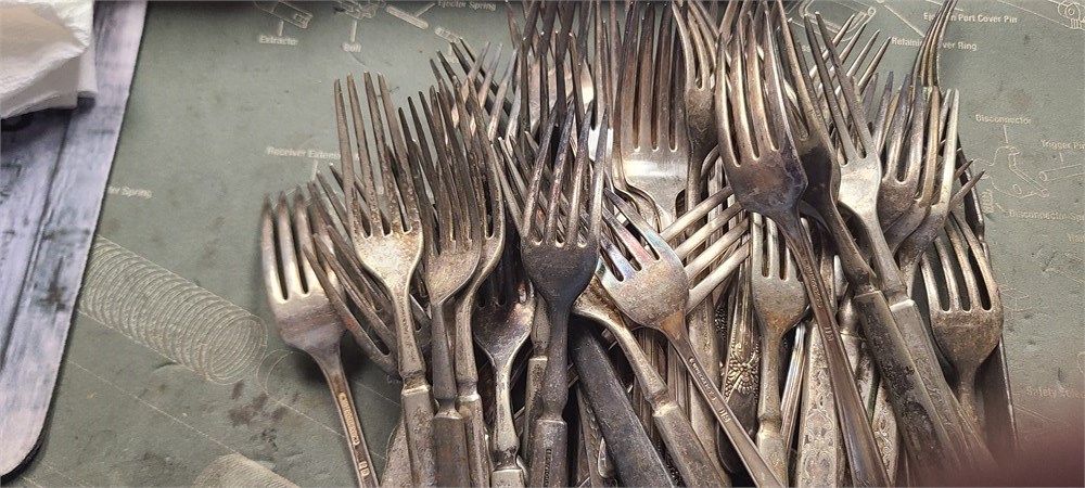 50 pieces of silverplate silverware. Great for making jewelry, crafts or home use.
