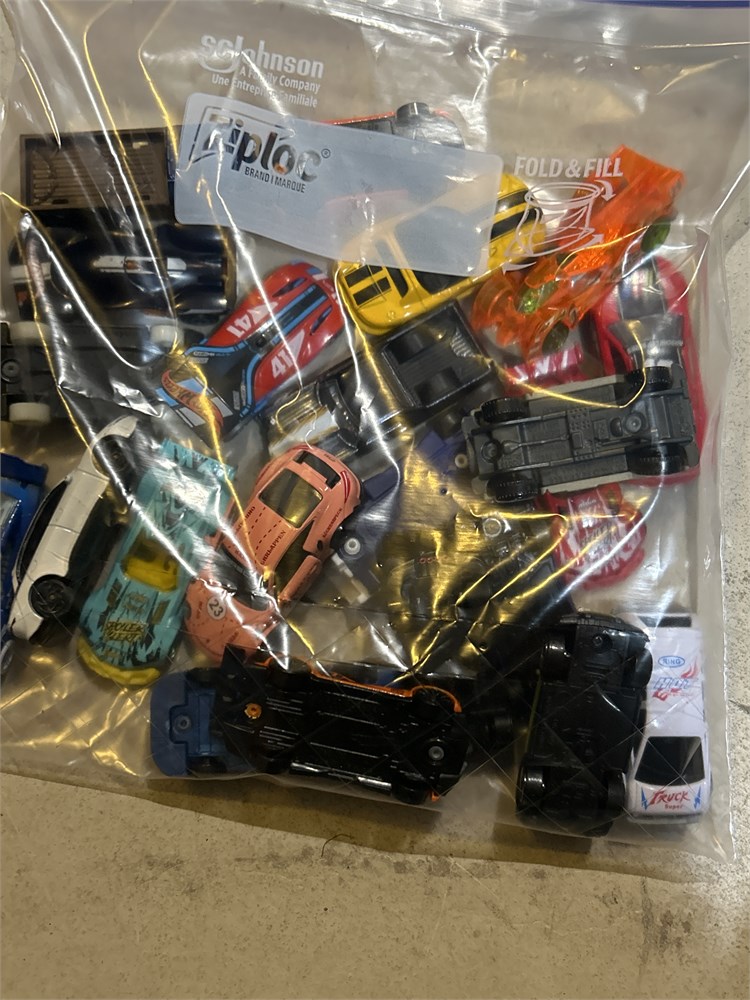 Assortment of hot wheels, matchbox, and more Ziploc Full