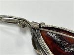 Marked 925, a silver amber brooch with European hallmark(s) on the pin stem (hard to photograph).  There is also a photo of the construction; no safety clasp.