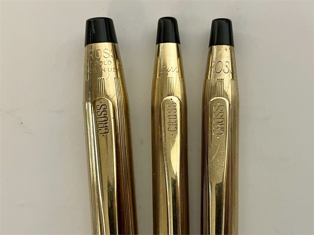 Parker Sterling Pen with Gold Nib, and 3 Gold-Filled Cross Instruments