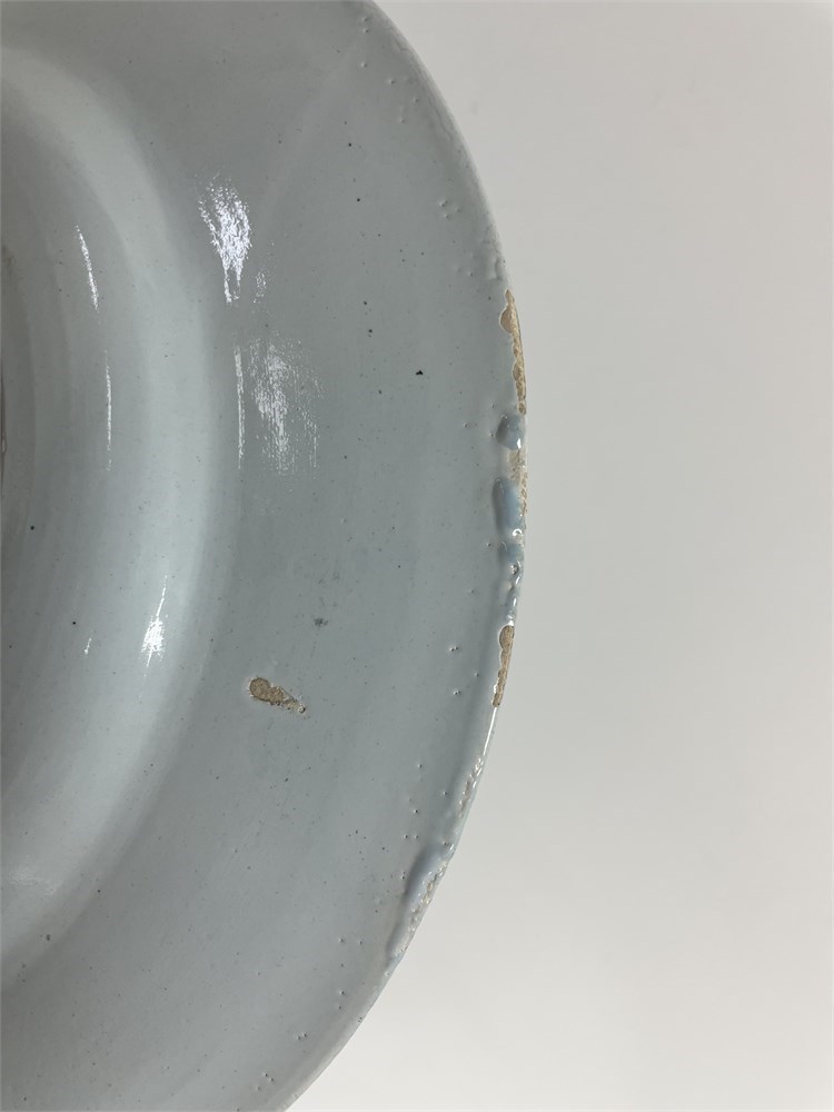 A wonderful set of earthenware scenic plates, four different designs, antique Delft ware.  The exact maker is unknown, but there is an axe or hatchet mark on the back of each (see photo).  They're in good condition, with some roughness or glaze loss on the rims and bases, but no actual chips or cracks.  10" diameter.