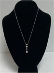 A silver necklace with drop design of four CZ stones.  Attractive and sparkly!  Marked: 925 / CZ.