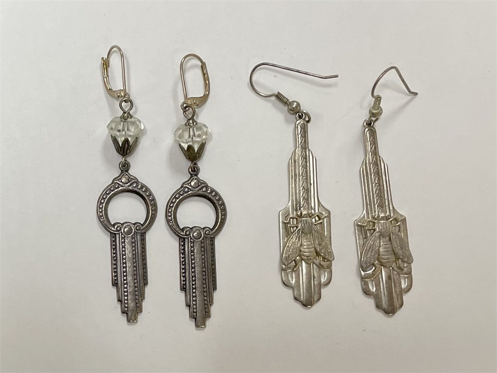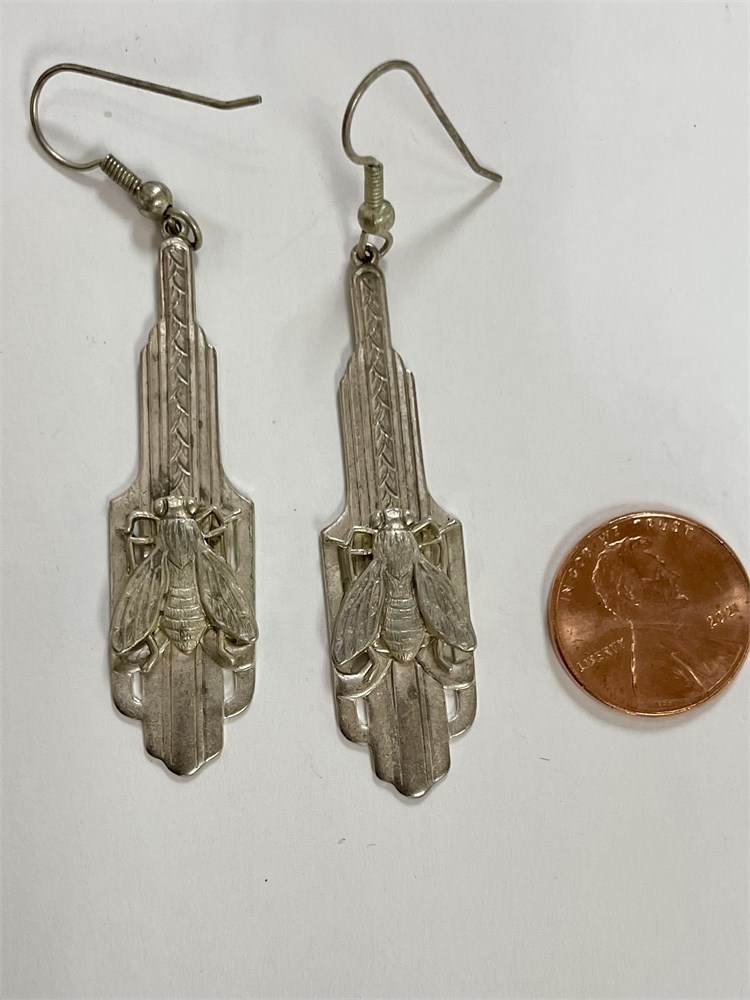 2 pairs of unsigned earrings, silver tone.  One is especially neat with honeybees on it.